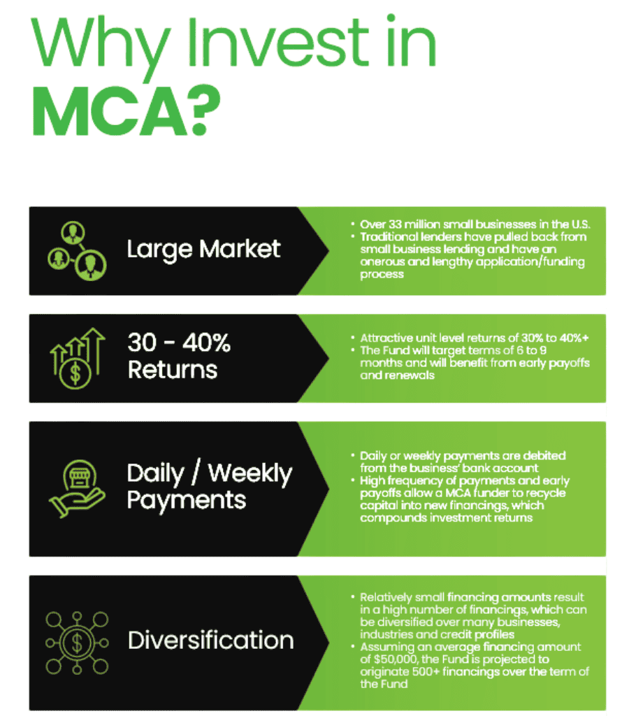 Timberview Capital introduces an income-focused opportunity through the Small Business Accounts Receivable Fund. Instead of traditional loans, this fund advances capital to small businesses in return for their accounts receivable, generating consistent monthly cash flow backed by daily and weekly repayment streams.