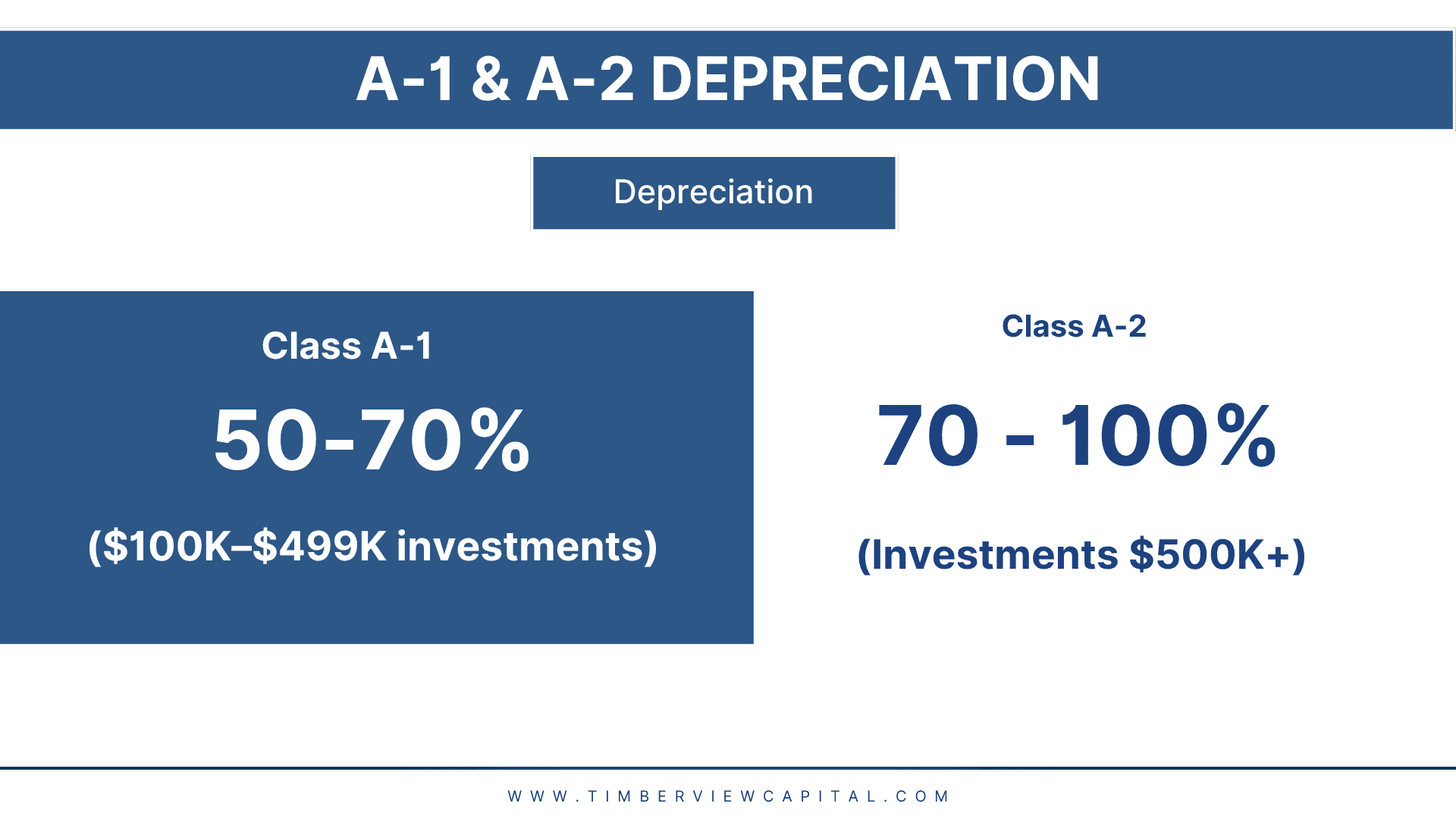 50% – 70% depreciation in year 1