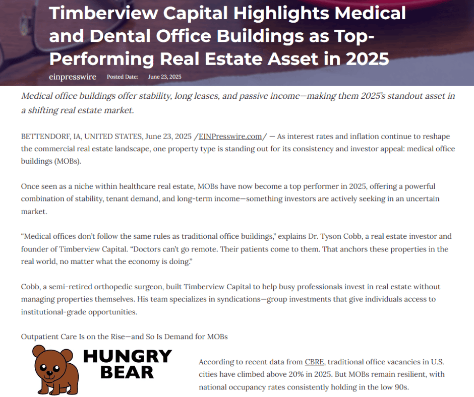 Timberview Capital Highlights Medical and Dental Office Buildings as Top-Performing Real Estate Asset in 2025
